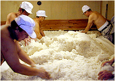 日本酒の心臓部「麹(こうじ)」も全て手造り。 杜氏入魂のしっかりとした力強い麹造りが山車のコクとキレを生み出します。当蔵の日本酒醸造で一番大切な工程です。