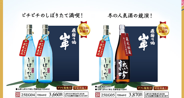 ご注文頂いた酒はすべて蔵元から直送しております。だから常に最高の飲み頃のお酒をお届けすることができるのです。