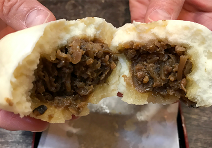 全国に名高いブランド牛「飛騨牛」を使用した肉汁たっぷりの牛まんです。
