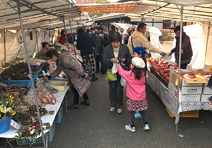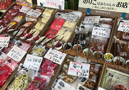 全国で唯一現存する代官所の横で毎朝催される朝市です。地元の新鮮な野菜や果物などがずらりと並んでいます。