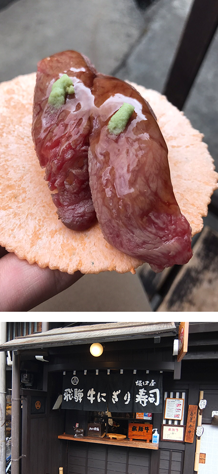 昔の江戸前の屋台寿司にならい店頭で販売されている飛騨牛のにぎり寿司もオススメです!