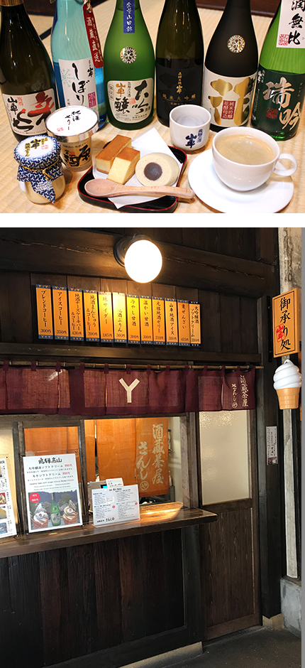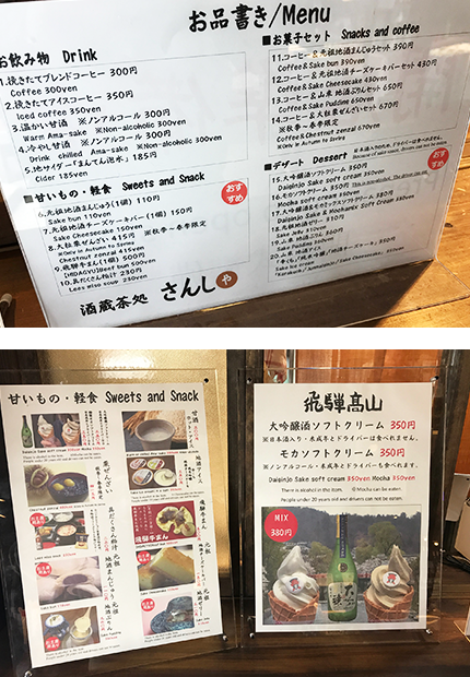 地酒チーズケーキ、地酒まんじゅう、大吟醸酒ソフトとクリーム、飛騨牛まんなどが手軽に楽しめる茶所です。