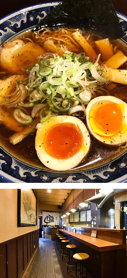 手間暇掛けて作られた醤油ベースのスープと特製縮れ麺との相性は抜群です!