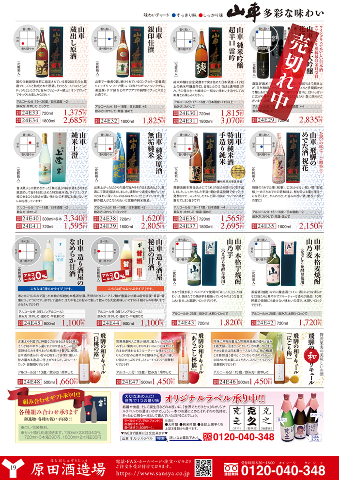 • 山車 和リキュール オリジナルラベル酒 本格麦焼酎 山乃麦 本格芋焼酎 山乃芋 山車 造り酒屋秘伝の甘酒 山車 造り酒屋のなめらか甘酒 飛騨のめでた酒 祝花 純米原酒 無垢純米 無ろ過純米酒 純米上澄  純米吟醸超辛口 雷吟 銀印佳撰 土蔵蔵熟成 蔵出し原酒 特別純米酒 手造り純米